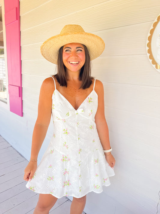 EYELET EMBROIDERED FLORAL DRESS