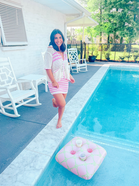 STRIPED OVERSIZED BUTTON-DOWN TOP & SHORTS SET