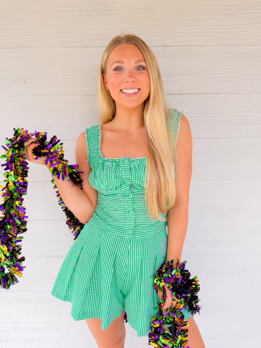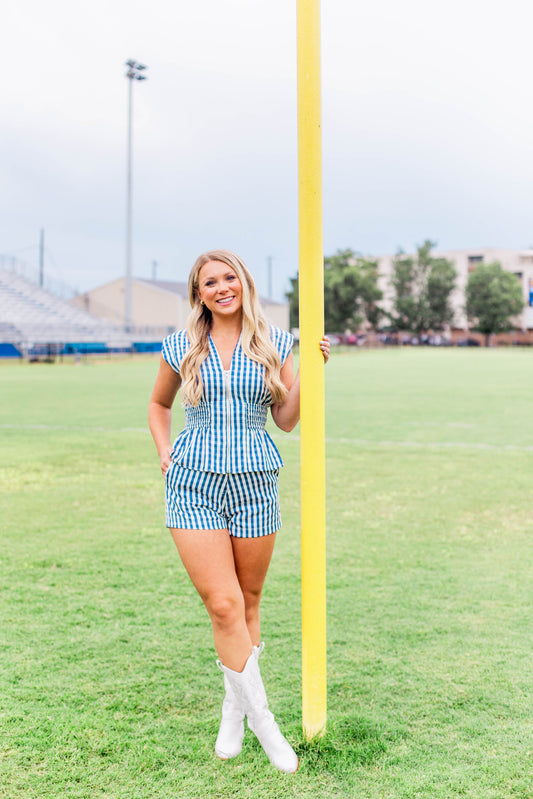 GINGHAM PLAID RUCHED TOP & PLEATED SHORTS SET