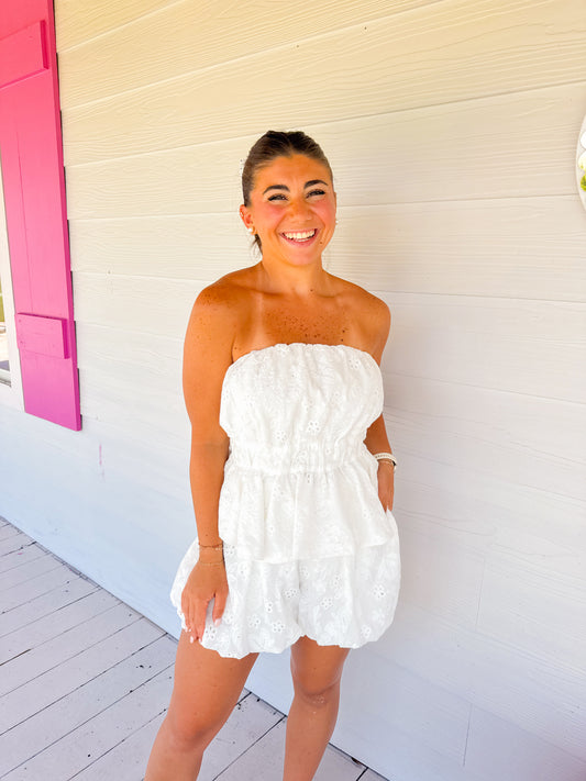 POLKA DOT BUBBLE BLOUSE & ELASTIC SHORTS SET