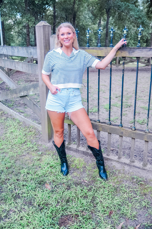 COLLARED STRIPE SWEATER