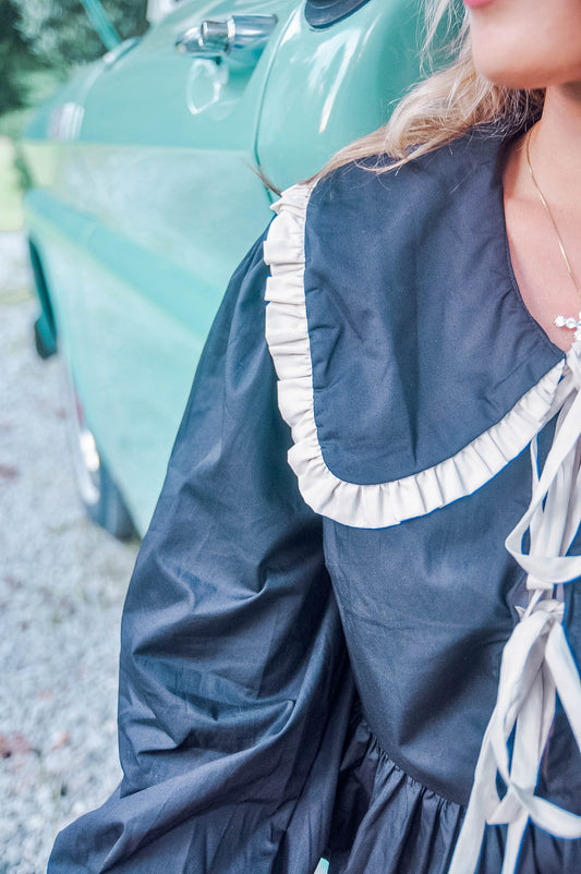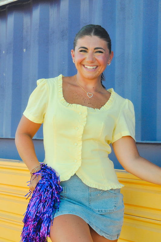RUFFLE TIE BACK BUTTON TOP