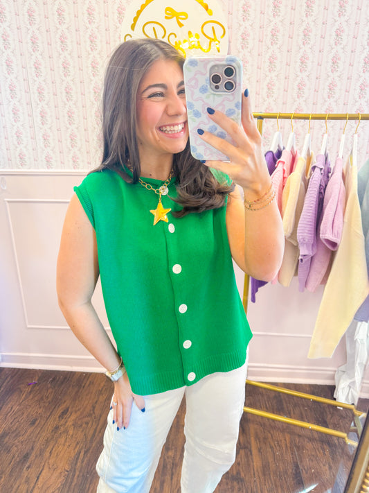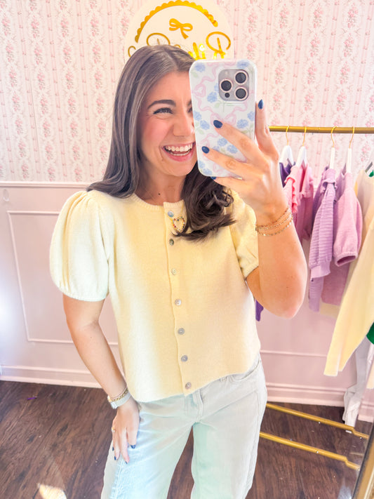 PUFF SLEEVE CREW NECK KNIT TOP - YELLOW
