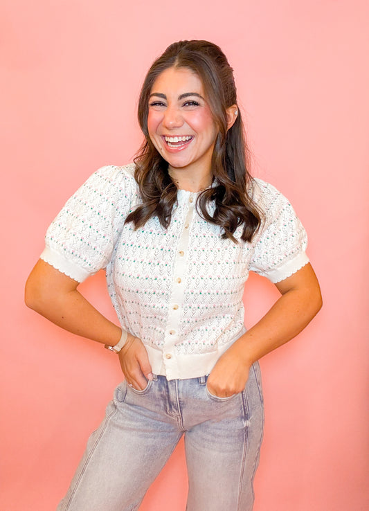 BUTTON UP SWEATER KNIT TOP - WHITE