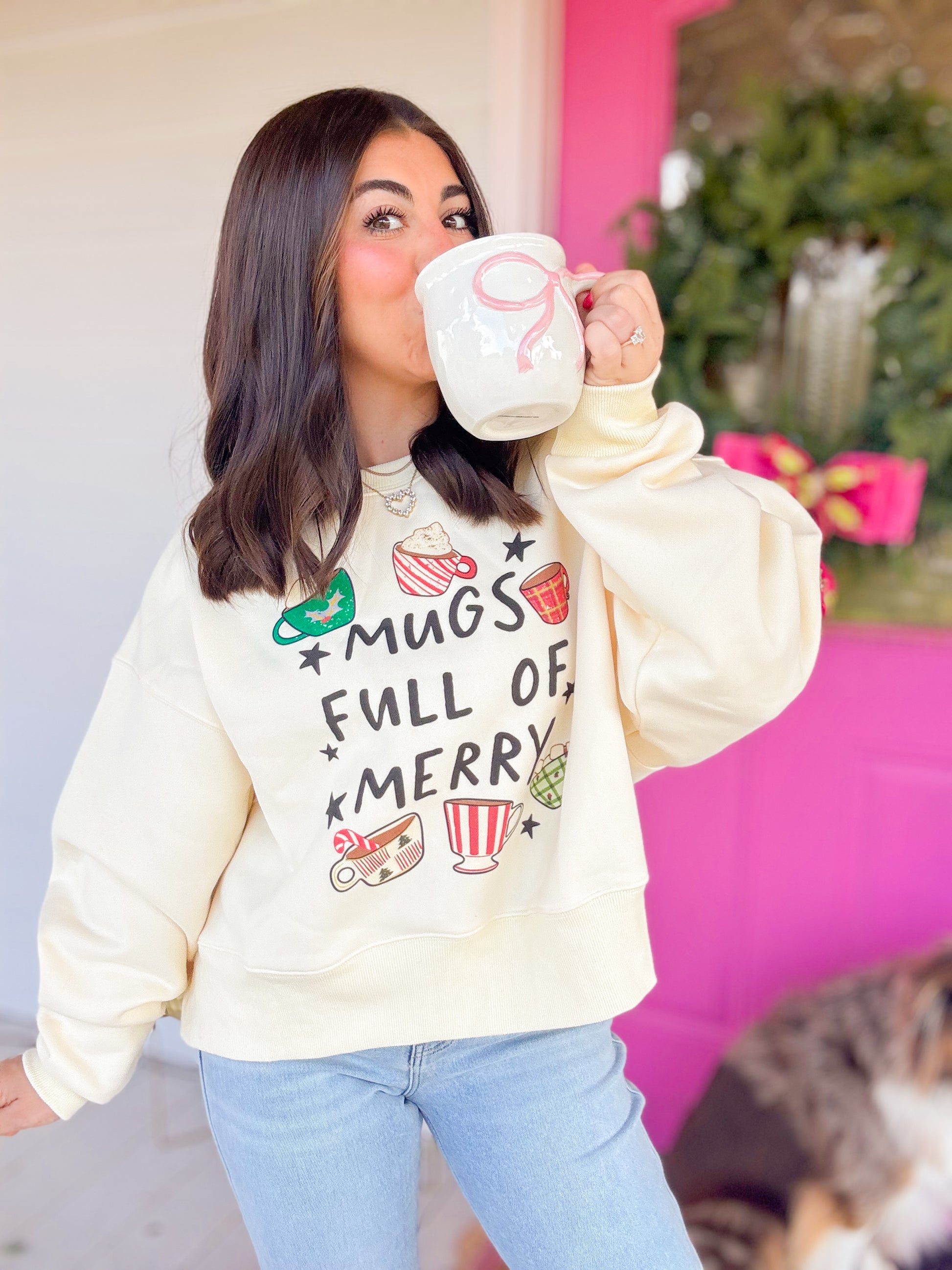 MUGS FULL OF MERRY CROP SWEATSHIRT