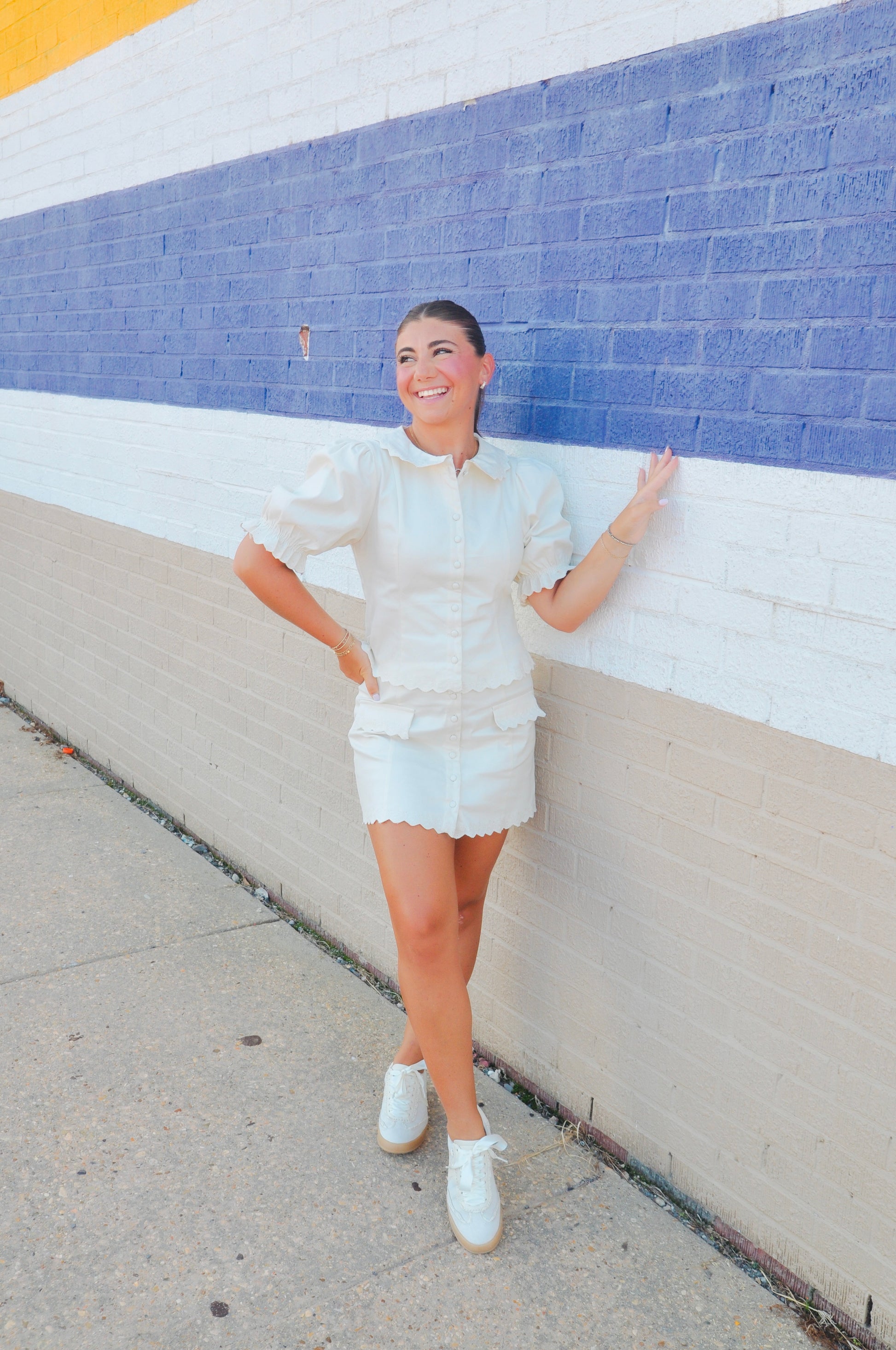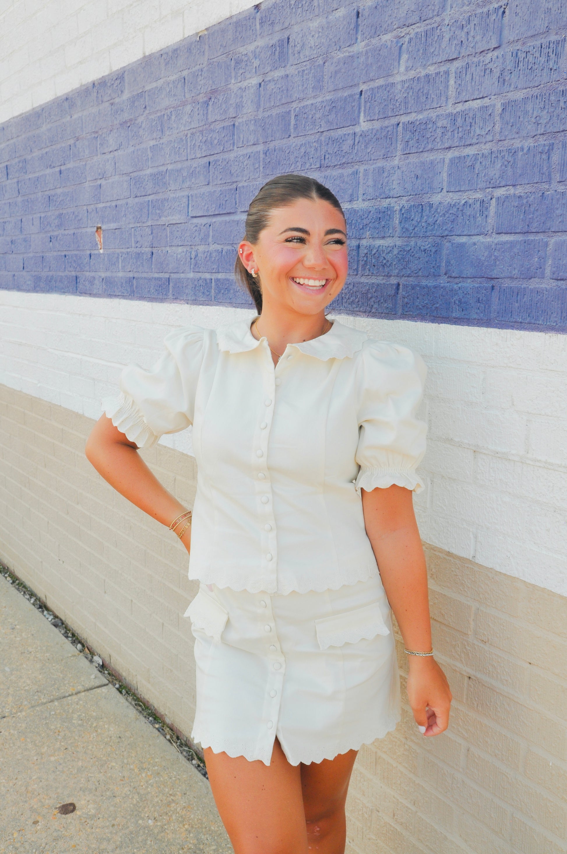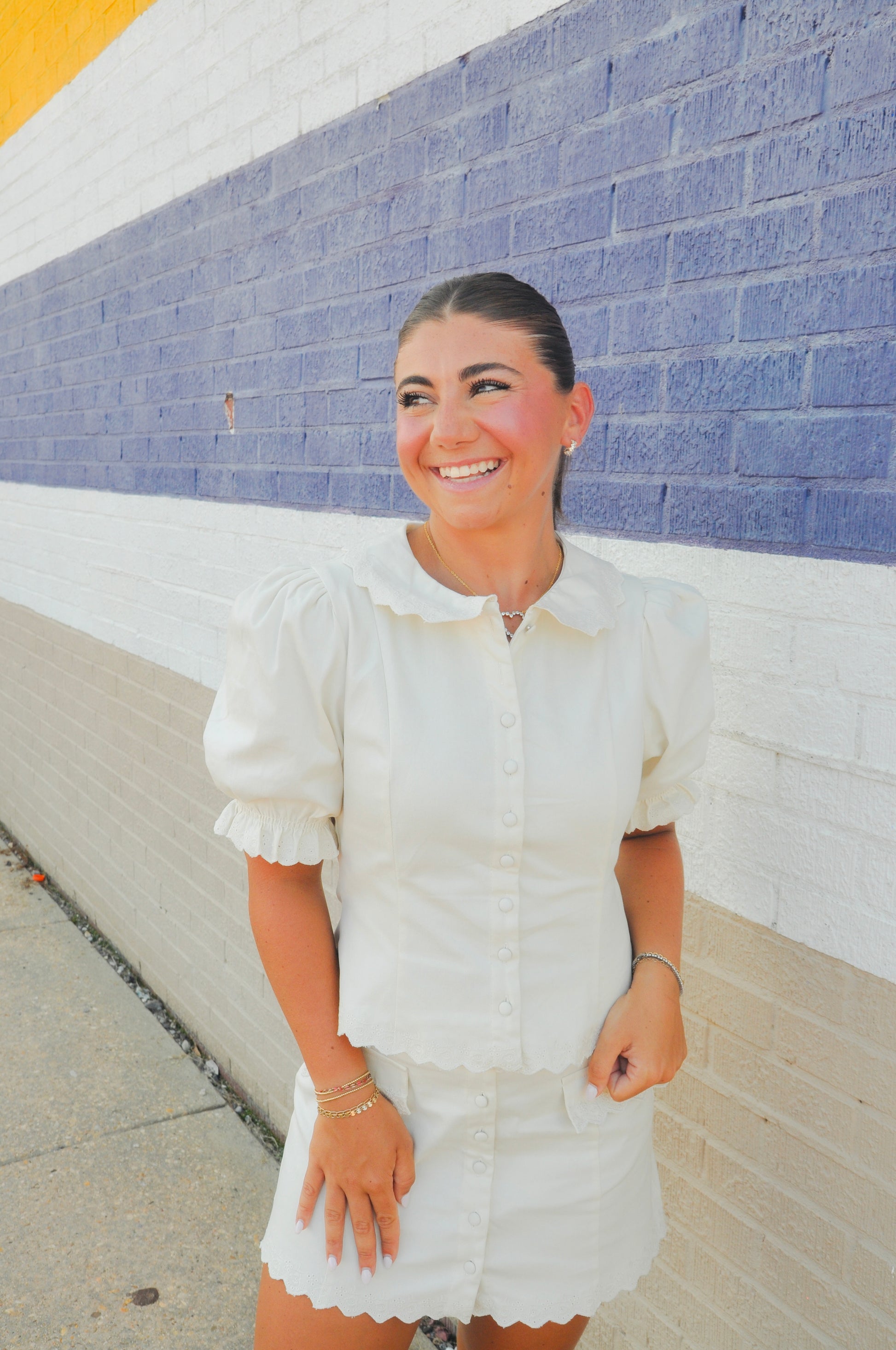 EMBROIDERY PETER PANT TOP & SKIRT SET