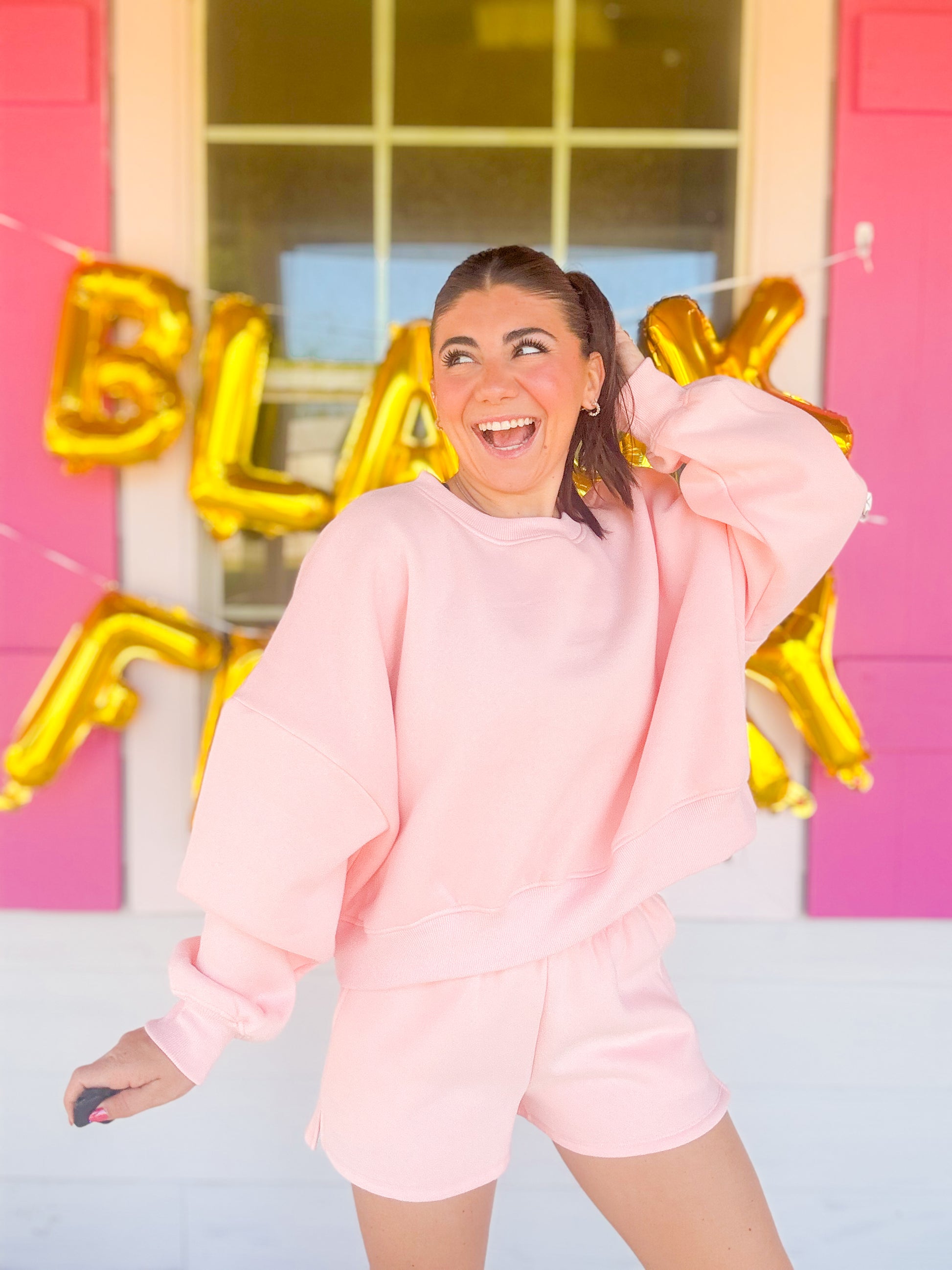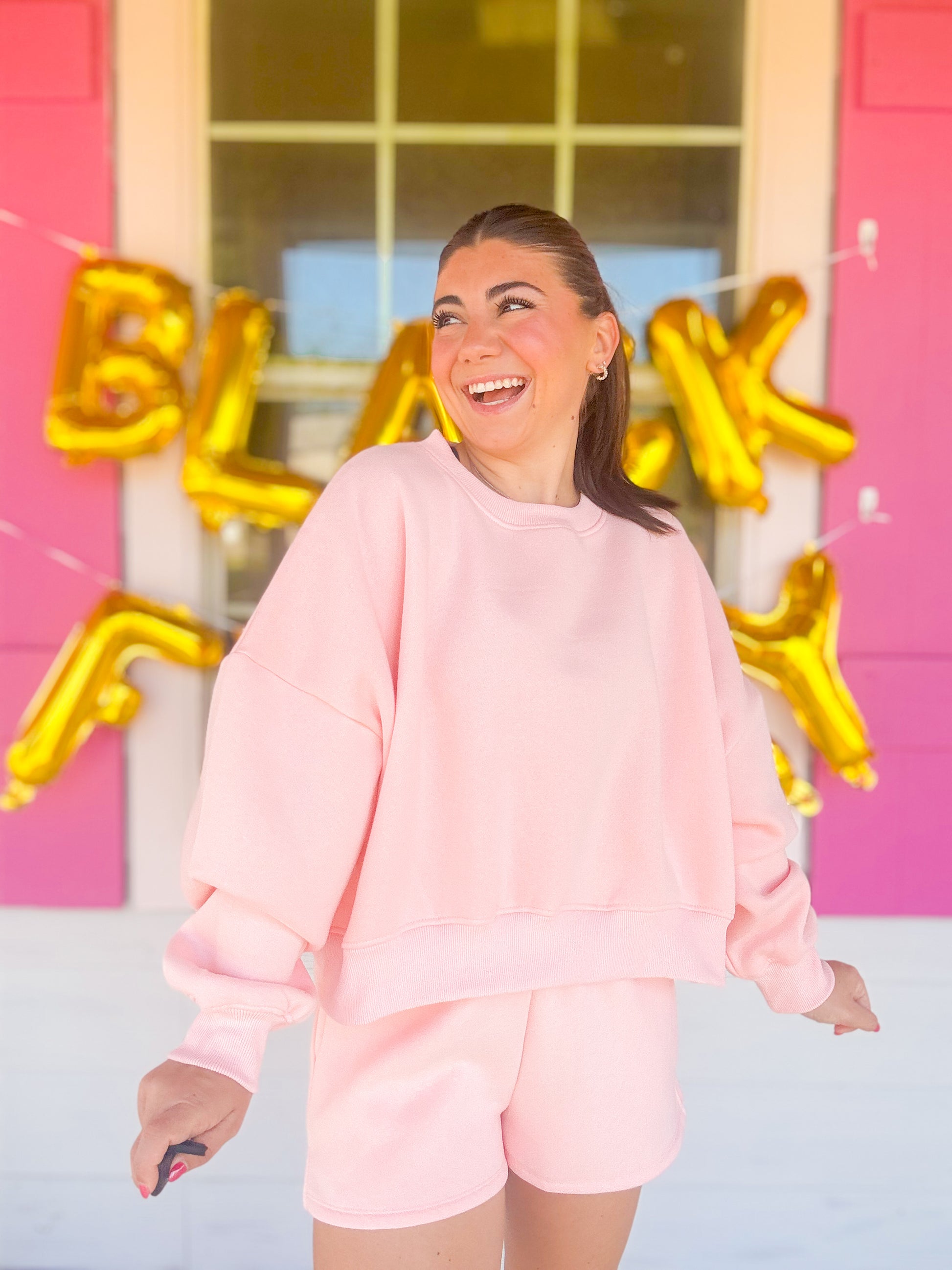 DOORBUSTER COZY FLEECE CREWNECK SWEATSHIRT - PINK