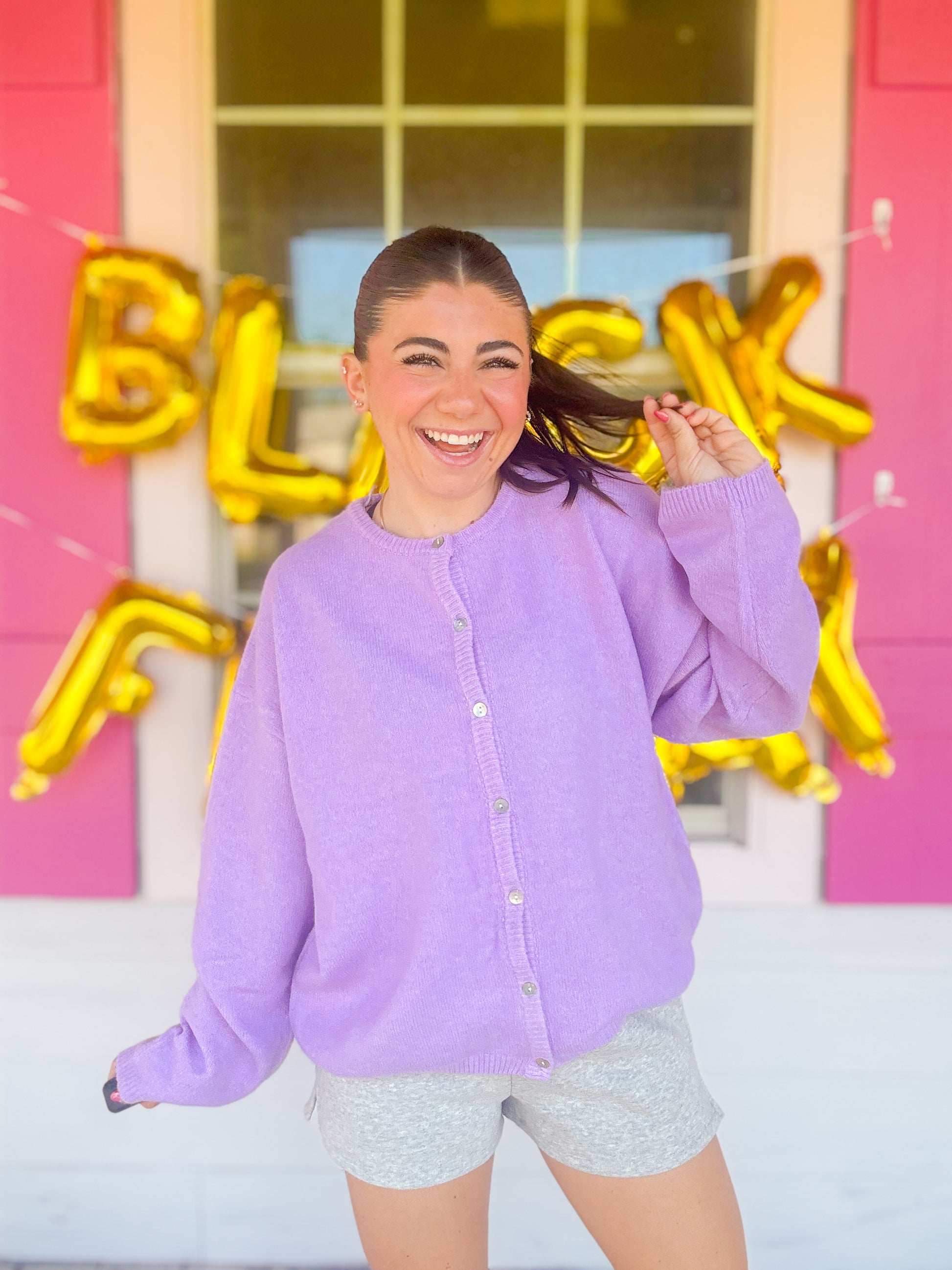 DOORBUSTER LONG SLEEVE CREW NECK SWEATER CARDIGAN - LAVENDER