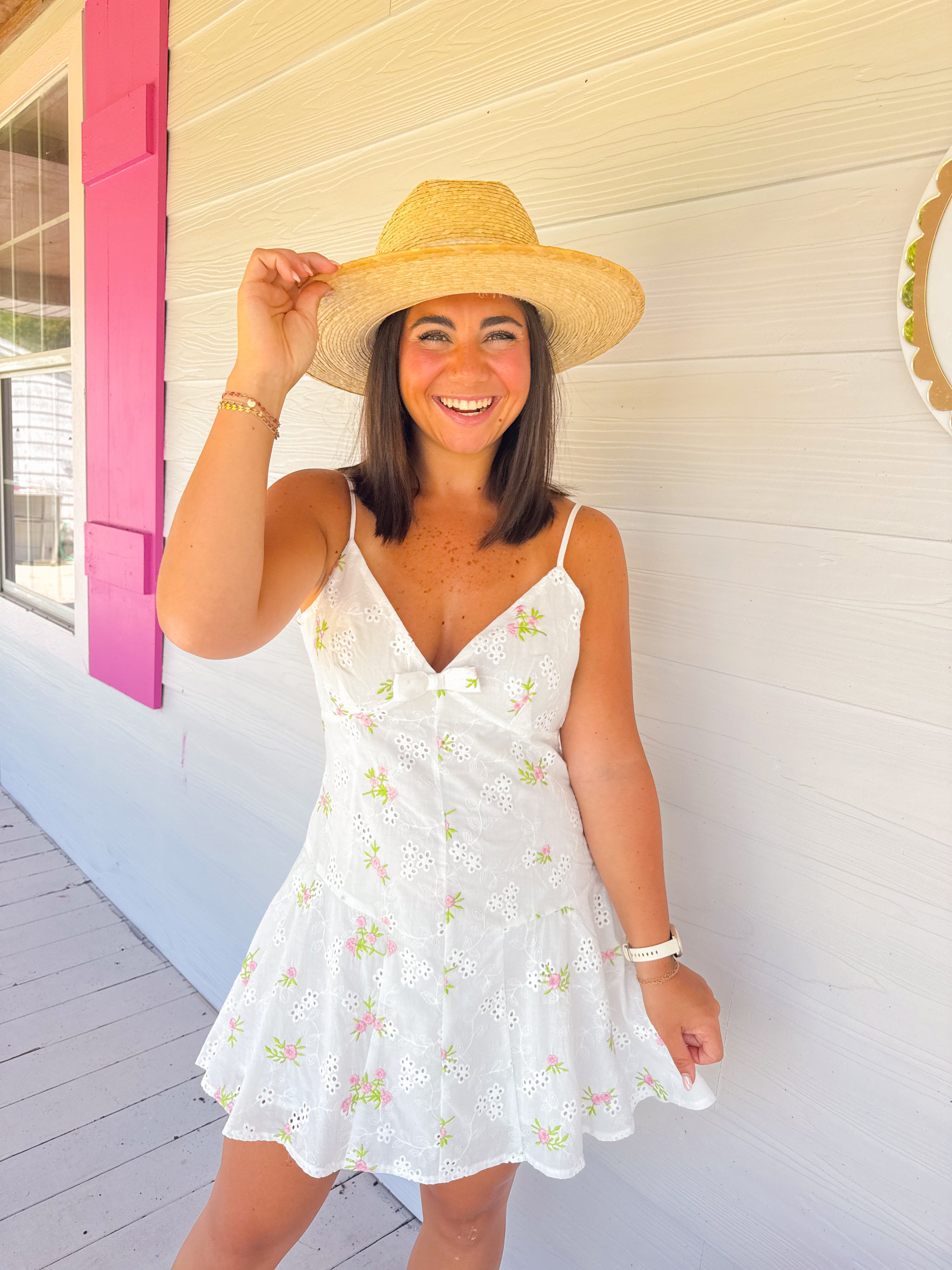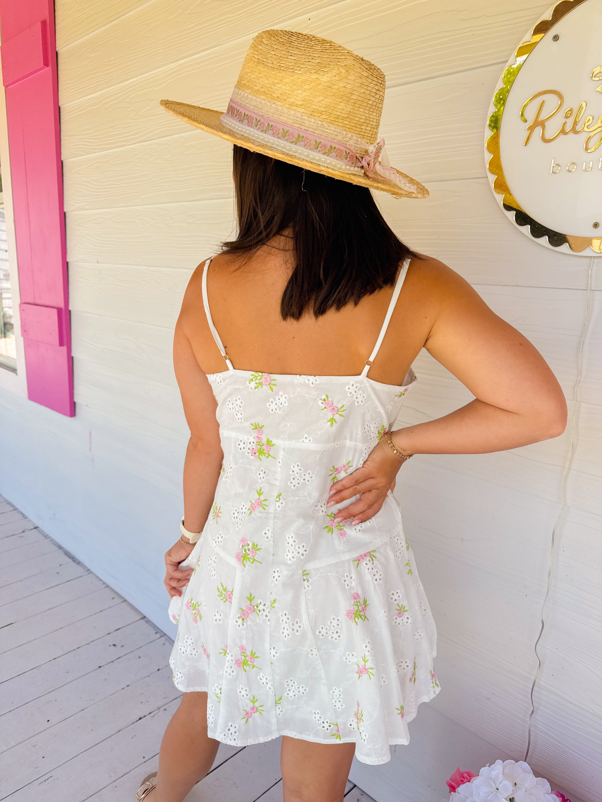 EYELET EMBROIDERED FLORAL DRESS