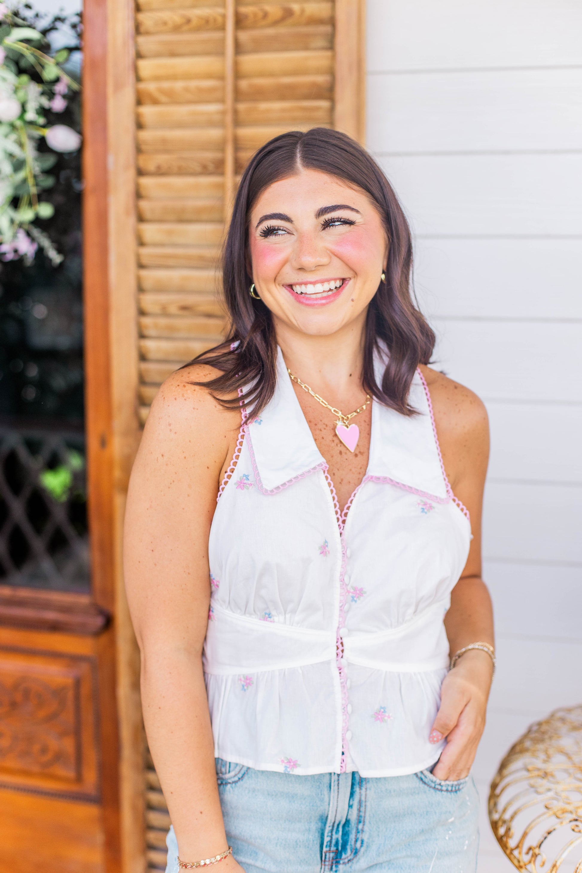FLORAL EMBROIDERED HALTER TOP