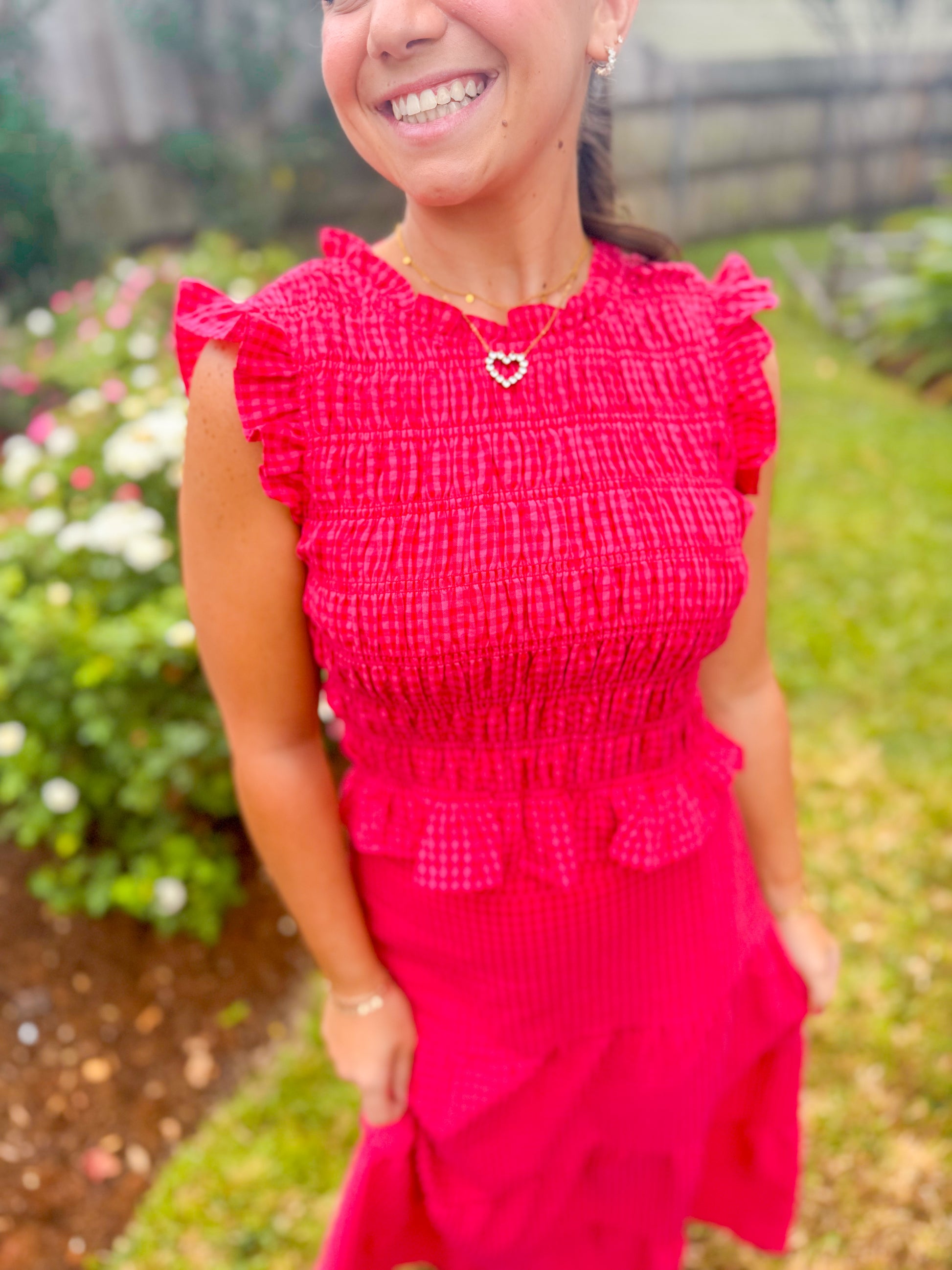 GINGHAM SMOCKED TOP & TIERED MAXI SKIRT SET