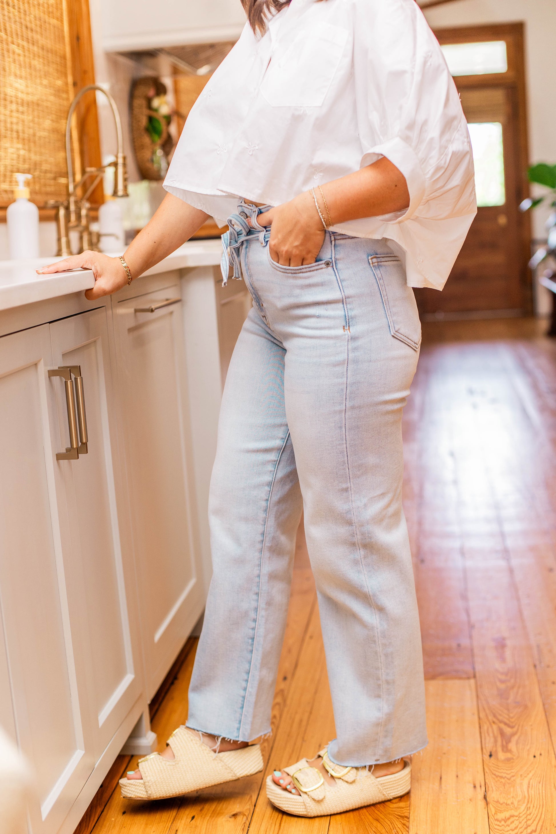 HIGH RISE WIDE STRAIGHT BELTED DENIM