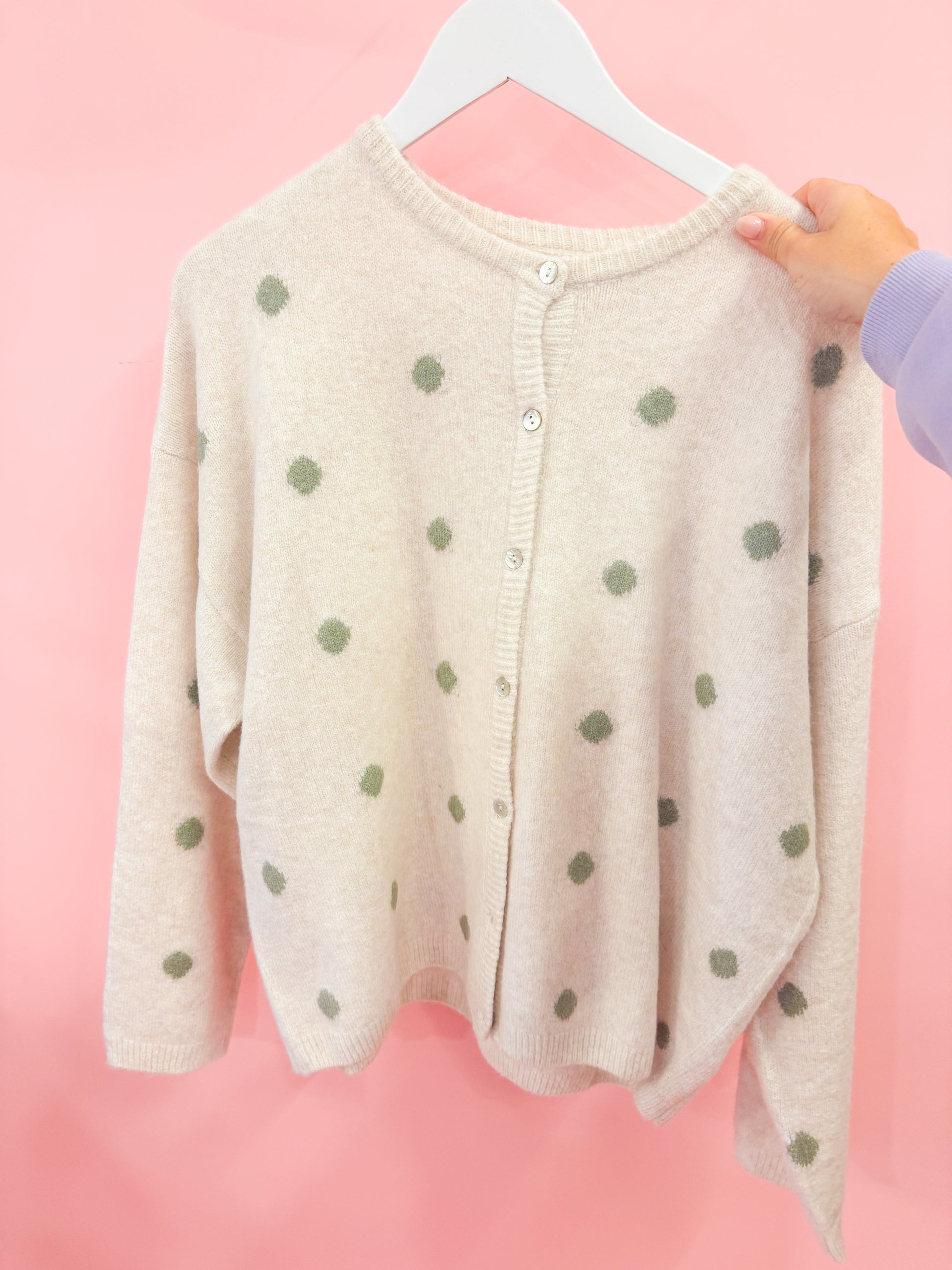 LONG SLEEVE CREW NECK POLKA DOT SWEATER CARDIGAN