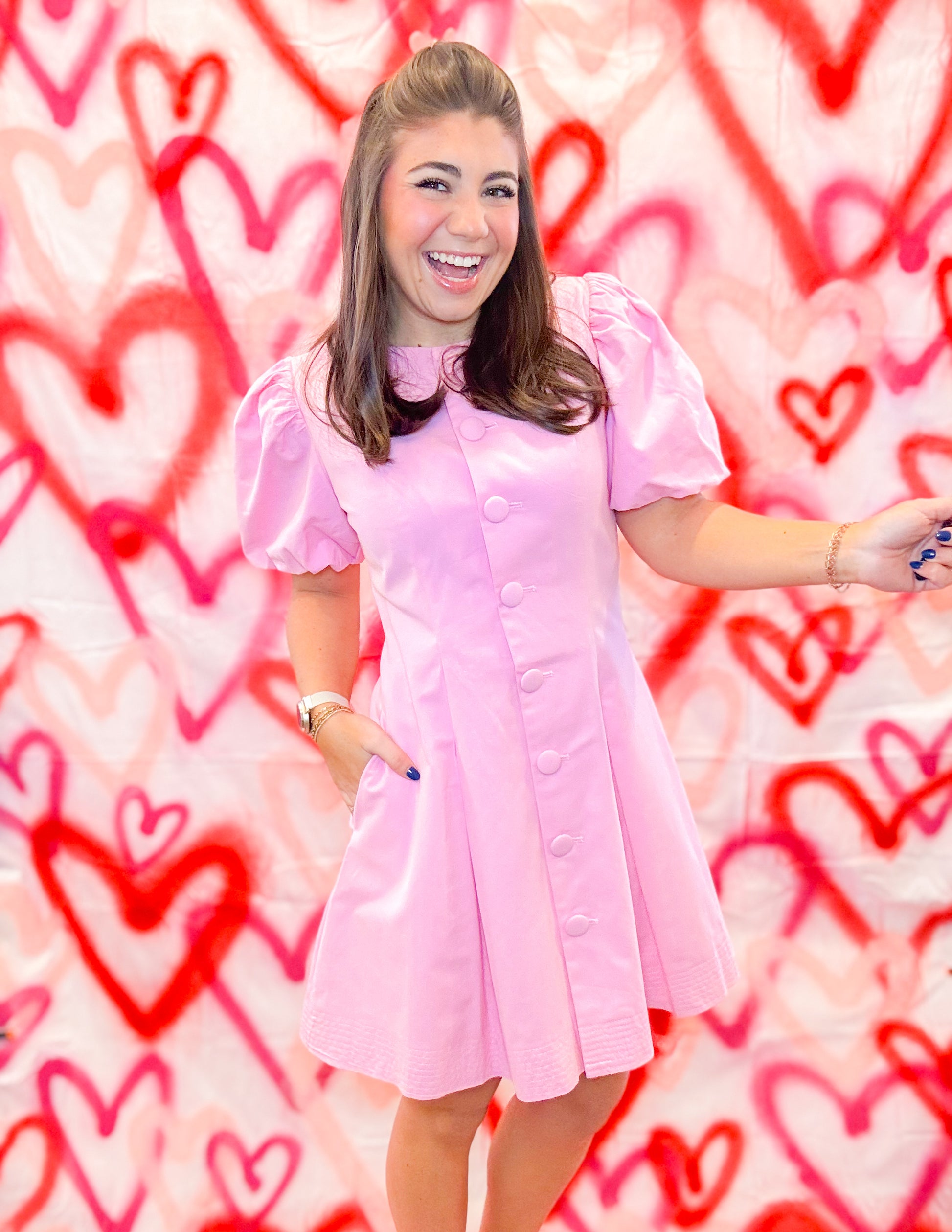 PUFF SLEEVE BUTTON DOWN MINI DRESS